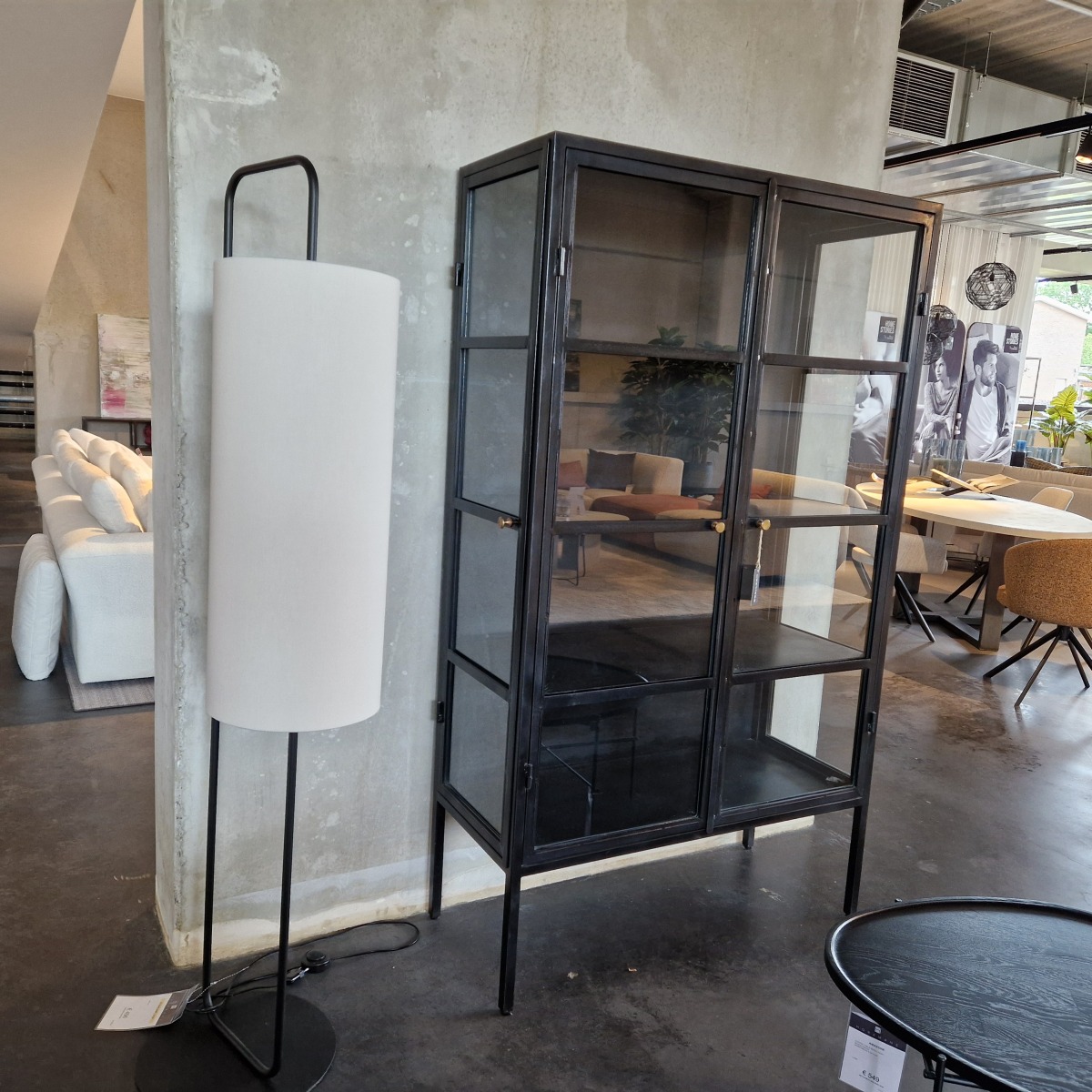 Toon je servies of je persoonlijke items in stijl met deze vintage metalen kast met glazen deuren.